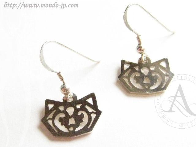 品名:アリスのチェシャ猫モチーフシルバー透かしピアス(左右ペアset)