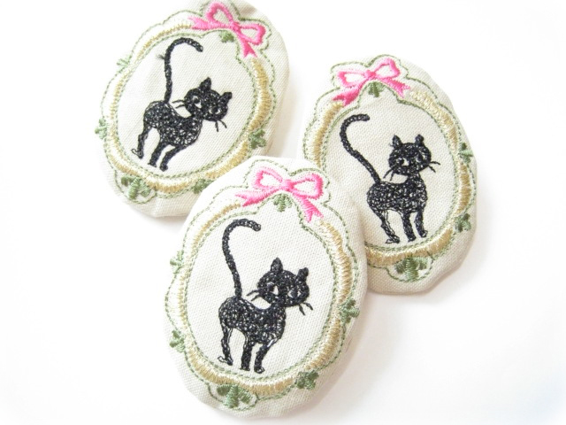 黒猫刺繍 ふわふわブローチ