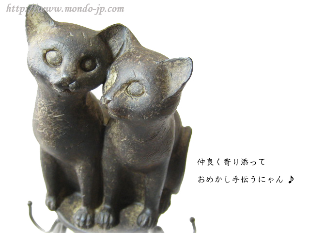 仲良く寄り添う2ニャンのアクセサリーホルダーです。